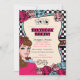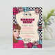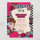 Vintage Pin-up, Convites de festas Rock-A-Billy, disponíveis para aniversários Noite de Raparigas e festas de solteira. Retro, o convite de festas pino-up da menina apresenta um fundo impressão preto-e-branco, uma garota pino-up bonita, rosa e azul, sotaques de tatuagem, bonito cores rosa e azul. Fornecimentos adicionais de festas de pinos-up para meninas estão disponíveis em Metro-Events na Zazzle e Metro-Event.com.