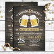 Divertidos "animadores e cervejas" celebrações de festa de aniversário com convites com fundo de grãos de madeira escura, fontes divertidas e caprichosas e duas canecas de cerveja de cerveja
