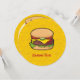 Ilustração de desenho animado cheeseburger. Imagem do contorno da comida de lixo ícones de fundo amarelo. Custom Text.