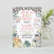 Chita Impressão chamando Todos os Animais de Festa Aniversário Convidando Meninas bonitas chamando todos os animais de festa safari, convite de aniversário com quatro animais da selva, folhagem e chita, padrão de impressão. Este convite de aniversário de safari também apresenta um título de cor pastel e peças de cabeça tribais.