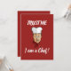 Cabeça de chef com chapéu, corcunda vermelha e texto personalizado.