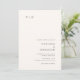 Convite Moderno de Casamento com um layout simples e minimalista com seu monograma no canto superior esquerdo e seus detalhes de casamento no canto inferior direito. As costas têm sua foto favorita. Todos os elementos de design estão em cinza sobre um fundo de marfim neutro e podem ser alterados na ferramenta de edição de design. Este convite de casamento chic com um design mínimo, mas elegante, vai bem com qualquer estilo de casamento contemporâneo.