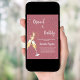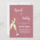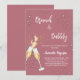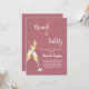Um convite moderno, na moda e glamouroso para um Chá de panela de bolinho. Um fundo rosa de ouro escuro feminino com bolhas, um par de flautas, óculos. O nome é escrito com um moderno estilo escrito à mão. Personalize e adicione os detalhes da sua festa.