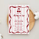 Celebrate your little “cherry on top” with this adorable baby shower invitation featuring soft pink stripes, playful cherry accents, and a charming bow detail. The whimsical yet elegant design is perfect for a sweet, feminine gathering that feels both modern and nostalgic. Ideal for dessert-themed showers or berry-inspired celebrations.