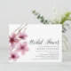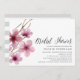 Os convites de chá de panela florais de primavera apresentam flores de cereja de cor d'água em cor rosa-claro-rosado-chic. Personalize com os detalhes do seu chá de panela alinhados à direita e embelezados com a elegante caligrafia. Convites inversos a cinzas claras e listras brancas.