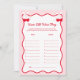 Add a sweet touch to your celebration with this Personalized Cherry Bridal Shower How Old Were They Game Card. Perfect for a cherry on top celebration or a she’s the cherry on top party, this fun guessing game fits beautifully with the cherry on top bridal shower theme or she's the cherry on top bridal shower theme. It also complements a tying the knot bridal shower theme red, shes tying the knot bridal shower theme, or she’s tying the knot bridal shower theme. Great for she’s tying the knot or valentine bridal shower ideas and valentine theme bridal shower ideas!