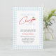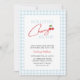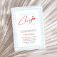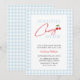 Este design apresenta um tema de chá de fraldas "Our Little Cherry On Top" com um simples padrão de xadrez azul-claro e um roteiro manuscrito moderno com ilustração de cereja fofa. Este convite pode ser facilmente personalizado com os detalhes do evento pessoal.