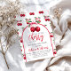 Celebrar o nascer "Cherry on top", em breve, com este convite fantástico e inspirador em cores vermelhas, verdes e cor-de-rosa e arco de fita para o Chá de fraldas Rapariga