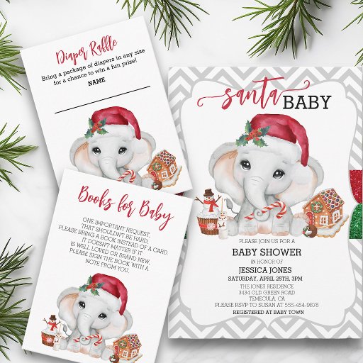Christmas Santa Baby Elephant Baby Shower Criado por Color Flow Creations