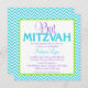 Padrão moderno de diafragma, convites de Bat Mitzvah. Apresentando um padrão chevron azul e branco com acentos de roxo e verde limão. Garota e design de pré-disquete!