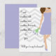 Um design moderno com uma dama de honra vestindo um vestido ou vestido roxo de lavanda curta. Ela está segurando um buquê de flores de tulipa. Ela parece na moda à medida que veste um colar correspondente, salto alto e seu cabelo repousa livremente nos ombros. O fundo é o moderno chevron zigzag stripes em uma cinza sutil. O texto diz "Algo velho, algo novo, algo emprestado, algo azul e você. Você será minha dama de honra?" Este cartão é para pedir a alguém para ser dama de honra, florista, madrinha de casamento ou outro membro da festa de noiva do seu casamento. Você pode adicionar uma mensagem pessoal ao verso clicando no botão Personalizar. Esse design está disponível em diversas cores, além de tons de pele e cor de cabelo. Se você não encontrar o que está procurando, apenas me diga.