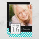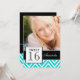 Diversão, garota, divertida, preta, branca e teal Chevron Doce Dezesseis Convites de festas com sua foto é a forma perfeita de convidar seus convidados para a doce festa de dezesseis filhos. Design de Elke Clarke©.