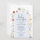 Os convites para chuveiros de bebês de na moda apresentam elegantes flores silvestres de aquarela e seus detalhes em caracteres quicos em um fundo azul. Faça o pedido de DOWNLOAD INSTANTÂNEO e/ou IMPRESSO ou ambos! CORRESPONDENTE a itens na nossa coleção.