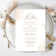 Aprecie seus convidados com este belo convite de casamento com delicadas manchas de água de creme bege macio e belo monograma botânico desenhado à mão. Detalhes da caligrafia escrita à mão. Capacidade de mudar a introdução "juntamente com os seus pais" para "juntamente com as suas famílias", "juntamente com a alegria do excelente" ou "juntamente com o prazer do excelente". Tanto frente como verso com manchas de aquarela. Elegante, simples, delicado e na moda. Se você preferir o convite com um retorno em branco, poderá fazer essa alteração seguindo estas etapas: clique no botão azul "Editar usando a ferramenta Design", localizado no final das caixas de texto modelo. Em seguida, na camada "traseira", adicione de "elementos" no menu à esquerda, um quadrado. Arraste os cantos com o rato e faça-o grande cobrindo as costas inteiras. Em seguida, mude a cor do quadrado para branco no menu à direita. Finalmente, clique no botão "concluído" no canto superior. Isso fará todo o convite ficar branco. Parte da nossa coleção "Beige Cream Watercolor, Botanical Monographic Wedding" com uma variedade de produtos de coordenação disponíveis. Visite toda a coleção com este link: https://www.zazzle.com/collections/beige_cream_watercolor_botanical_monogram_wedding-119369254146361074