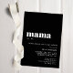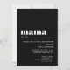 Um chá de fraldas tipográfico moderno, preto e branco, chamado "mama" como a manchete principal.