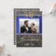 Convite Chic Preto e Dourado com seda azul apresenta a fotografia do casal.
