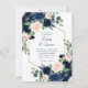 Azul-romântico-marinho e cor-de-água rosa-rosa, cor-de-rosa, pintada à mão, floral embelezado por realces botânicos e azuis-escuros. Da coleção "Boho Bloom", este lindo layout apresenta seus detalhes em um roteiro com letra de na moda e um rico buquê de flor selvagem boêmica com flores radiantes e folhagem verde de eucalipto. Para outras cores ou produtos correspondentes, visite a loja justFharryn Zazzle ou entre em contato com o designer, c/o Fharryn@yahoo.com Todos os direitos reservados. #bohochic #zazzlemade