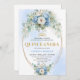 Convites Chic Blue Peony Gold Script Quinceañera Invite