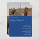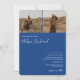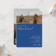 Um convite de casamento moderno, chic e elegante com nomes personalizados com caligrafia escrita à mão em azul-chic e branco e 3 fotos. Todas as cores de texto, nomes e fundo são personalizáveis. Um convite simples e minimalista. Adicione seu código qr para um tudo em um convite de casamento com rsvp, detalhes e mais informações.