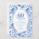Convites Chic Blue Toile Roses 60th Birthday Invitation