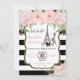 Convites Chic Blush Floral Paris Aniversário Torre Eiffel