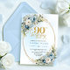 Convites Chic Bohemian Blue Floral Greenery 90th Birthday