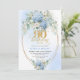 Convites Chic Boho Blue Hydrangea Floral Gold 90th Birthday
