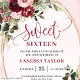 Convites Chic Boho Blush Burgundy Rose Sweet 16 Invitation