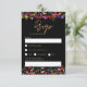 Adicione um toque de elegância boêmica ao seu casamento com este cartão de casamento Rsvp de flores selvagens colorido e moderno Boho Bright. Apresentando flores botânicas de matizes cor-de-rosa, vermelha, verde e roxa inspiradas em flores silvestres e jardins rústicos de aquarelas com um verde sutil e uma tipografia moderna de matizes. Com uma elegante tipografia moderna, perfeita para casamentos de jardim ao ar livre causais.