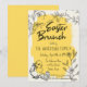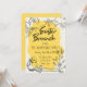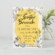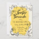 Convite de brunch de Páscoa em amarelo e marrom com um pintinho usando um laço, ovos de Páscoa e ilustrações florais. Personalize com os detalhes da festa e informações de RSVP.