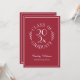 Envie convites de formatura elegantes para a celebração do seu graduado apresentando um emblema de tipografia branco sobre vermelho borgonha que diz: GRADUADO DA TURMA DE [ANO] com as palavras curvando em torno do ano no meio com folhas botânicas curvas ao longo de cada lado do desenho circular. Abaixo do emblema está o nome do graduado em uma fonte cursiva branca e a escola dele em uma fonte serifada elegante. Um retângulo branco fino cria uma borda perto da borda.
