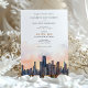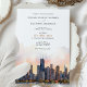 Announce your upcoming wedding with this sophisticated invitation, featuring the iconic skyline of Chicago, Illinois. The card showcases a stunning watercolor illustration of Chicago’s famous architecture, beautifully depicted with the serene hues of dawn or dusk. The elegant serif and script fonts in warm terra cotta and muted gold add a touch of modern chic. Perfect for couples planning a contemporary urban wedding, this invitation combines the charm of Chicago's skyline with a refined artistic flair.