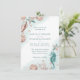 Coleção de casamento Elegante verde-negro e água de cobre "sol, areia e mar". A design apresenta conchas marinhas, estrelas-do-mar, um cavalo-marinho e recifes de corais em elogios a tons de verde profundo e coral com uma abertura de verde-menta para um efeito de água. Os pormenores em caracteres verdes e escuros modernos são enquadrados pela fronteira náutica da garland de coral, conchas e estrelas-do-mar.