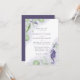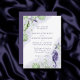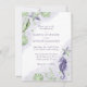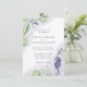 Coleção de casamentos "Sol, areia e mar", pastel roxo de lavanda branca e verde limão d'água. A design apresenta conchas marinhas, estrelas-do-mar, um cavalo-marinho e recife de coral em elogios a tons de roxo profundo e verde com uma abertura de roxo para um efeito de água. Seus detalhes em letras roxas violetas escuras e roxas são enquadrados pela fronteira náutica da garland de coral elegante, conchas e estrelas-do-mar.