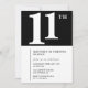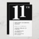 Convite de aniversário de 11 preto e branco Simples