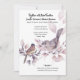 Uma bela ilustração com aquarela, com duas bonito aves coloridas de canela com listras e manchas nas asas, sentadas sobre galhos roxos rosas e cinzas pálidas cheias de folhas delicadas. A parte de trás é moldada por uma borda de folha suave e os modelos na frente e no verso podem ser personalizados para atender às suas necessidades. Sinta-se livre para excluí-los ou movê-los também e para alterar o tamanho e o estilo das fontes, se preferir. São ideais para pequenos casamentos familiares íntimos; para o destino do país e para as celebrações de eventos florestais ou para qualquer festa de aniversário.