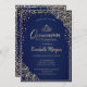 Convites Chic Dourada Tiara, Diamantes Azul Quinceañera