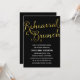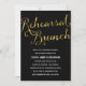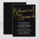 Este convite elegante para o ensaio de brunch apresenta uma caligrafia maravilhosa, uma folha de ouro falsa e um fundo preto chic.