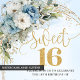 Convites Chic Dusty Blue Floral Eucalyptus Sweet 16 Invite