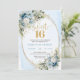 Convites Chic Dusty Blue Floral Gold Sweet Sixteen Invite