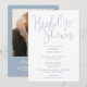 Este convite elegante em azul empoeirado para chá de noiva pode ser personalizado com todas as informações do seu evento especial e foto e código QR do registro no verso. Criado por Thisisnotme©