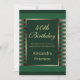 O verde esmeralda e ouro moderno e único abre um convite de aniversário geométrico com o roteiro moderno. Personalize os detalhes na frente e atrás. Este convite exibe a idade de 40 anos, mas você pode alterá-lo para a idade que quiser.