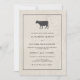 Este convite de casamento rústico e tendencioso tem uma vibração moderna com seu elegante texto preto, silhueta de vaca, e fina borda negra em uma madeira branca parecem fundo. A parte traseira apresenta um design de faixa branca.