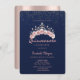 Convites Chic Floral Crown Navy Blue Quinceañera