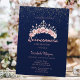 Elegant floral crown on the navy blue quinceañera party invitation.
