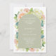 Todos em um sábado, convites de casamento verdes e brancos mostram seus detalhes da cerimônia na frente e mais detalhes no verso em letras brancas chic. Lindas flores de aquarela - hortênsias brancas e verdes, rosas cor-de-rosa e creme, margaridas, pequenos caules e folhas. CORRESPONDENDO a itens na nossa loja.