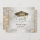 Watercolor graduation cap, and gold frame on a gray and gold background.