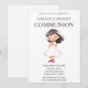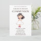 Celebre o dia especial de sua filha com este belo convite da Primeira Comunhão, com uma ilustração de uma garota sorridente em um vestido clássico de comunhão. Esta design elegante e sincera é perfeita para convidar a família e os amigos a juntarem-se à celebração sagrada. Personalize facilmente com o nome da honraria, os detalhes do evento e uma mensagem pessoal para criar uma manutenção exclusiva para este marco importante