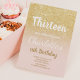 Mbre de ouro amarelo-esverdeado em 13 cor-de-rosa-pincelada Aniversário Um Convite de aniversário moderno de treze com convite brilhante a ouro moderno, original e simples e estilo escrito à mão, tipografia de pincel num fundo cor-de-rosa pincel verde-pincel totalmente personalizável.