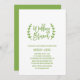Esta carta de convite para o almoço de casamento da caligrafia verde-chic é perfeita para um evento de moda. A design apresenta uma tipografia divertida, escrita à mão, com deliciosos loops e espirais cercados por ramos de oliveira verdes claros.